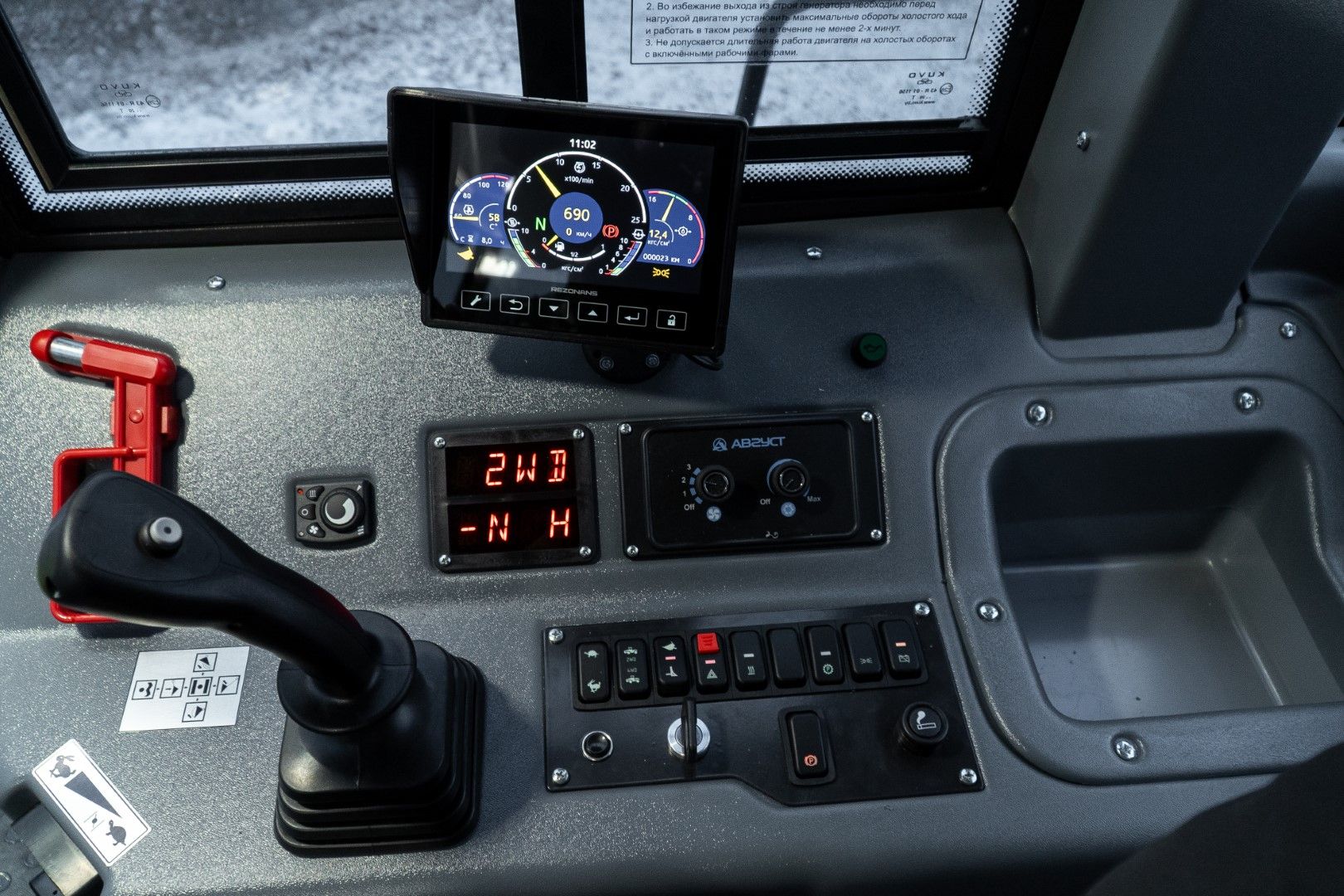| Кабина с дополнительным сидячим местом, тепло-шумо-изолированная, с регулируемым тепловым режимом, с центральным расположением подрессоренного сиденья водителя с трехточечным ремнем безопасности, встроенным каркасом ROPS-FOPS, защищающим оператора от опрокидывании машины (ROPS) и от падающих предметов (FOPS). Удобное расположение органов управления, тонированные стекла. Кондиционер устанавливается штатно. Поворотный пост. |